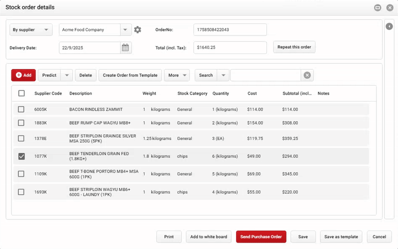 Once you've added and arranged all your desired stock items, you're then ready to send your Purchase Order!