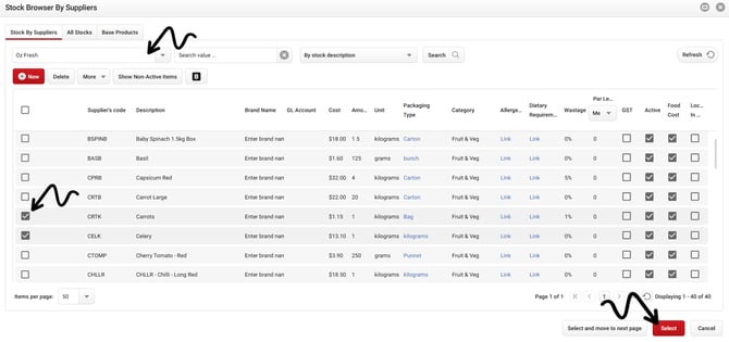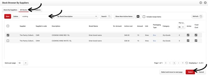 Tip: You can switch to the All Stocks tab when you want to search through your full stocklist instead of a specific supplier.