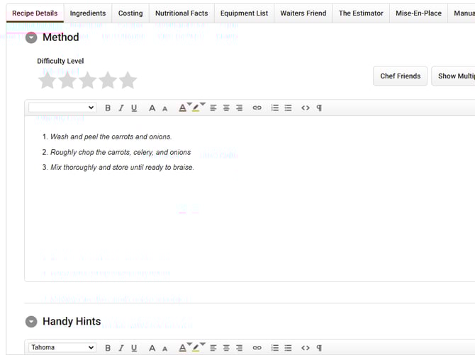 Handy Hints can be used to add any special notes or preparation tips that don't belong in the other sections.