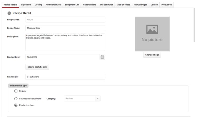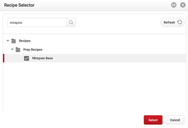 In the Recipe Name field, enter Mirepoix Base. For the Description, you can copy and paste the following: