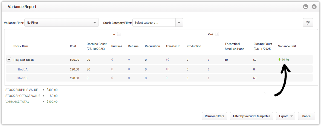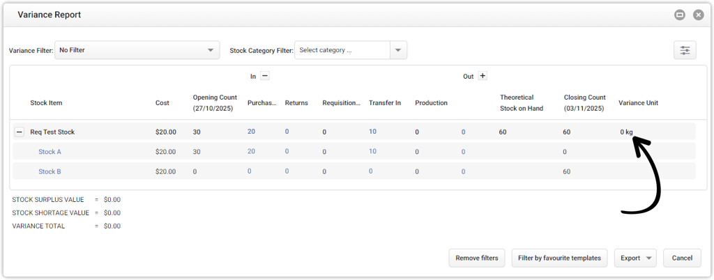 After the date is entered, the system will use the Stock Received Date—rather than the Invoice Date—when calculating Theoretical Stock on Hand and when determining how stock movement aligns with stocktake periods. This ensures that reports such as the Variance Report accurately reflect stock that was received before a stocktake, even if the invoice was issued afterward.